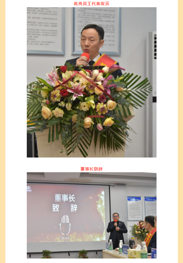 年會(huì)開始,董事長上臺(tái)致辭,共同回顧過去一年的辛勤與收獲,展望未來的機(jī)遇與挑戰(zhàn)。過去一年,全體員工團(tuán)結(jié)協(xié)作,攻堅(jiān)克難,取得了令人矚目的成績。董事長代表公司管理層,向每一位辛勤付出的員工表示衷心的感謝和崇高的敬意。希望未來,繼續(xù)發(fā)揚(yáng)拼搏精神,共創(chuàng)更加輝煌的明天。最后,對(duì)全體員工表達(dá)了真摯的新年祝福。