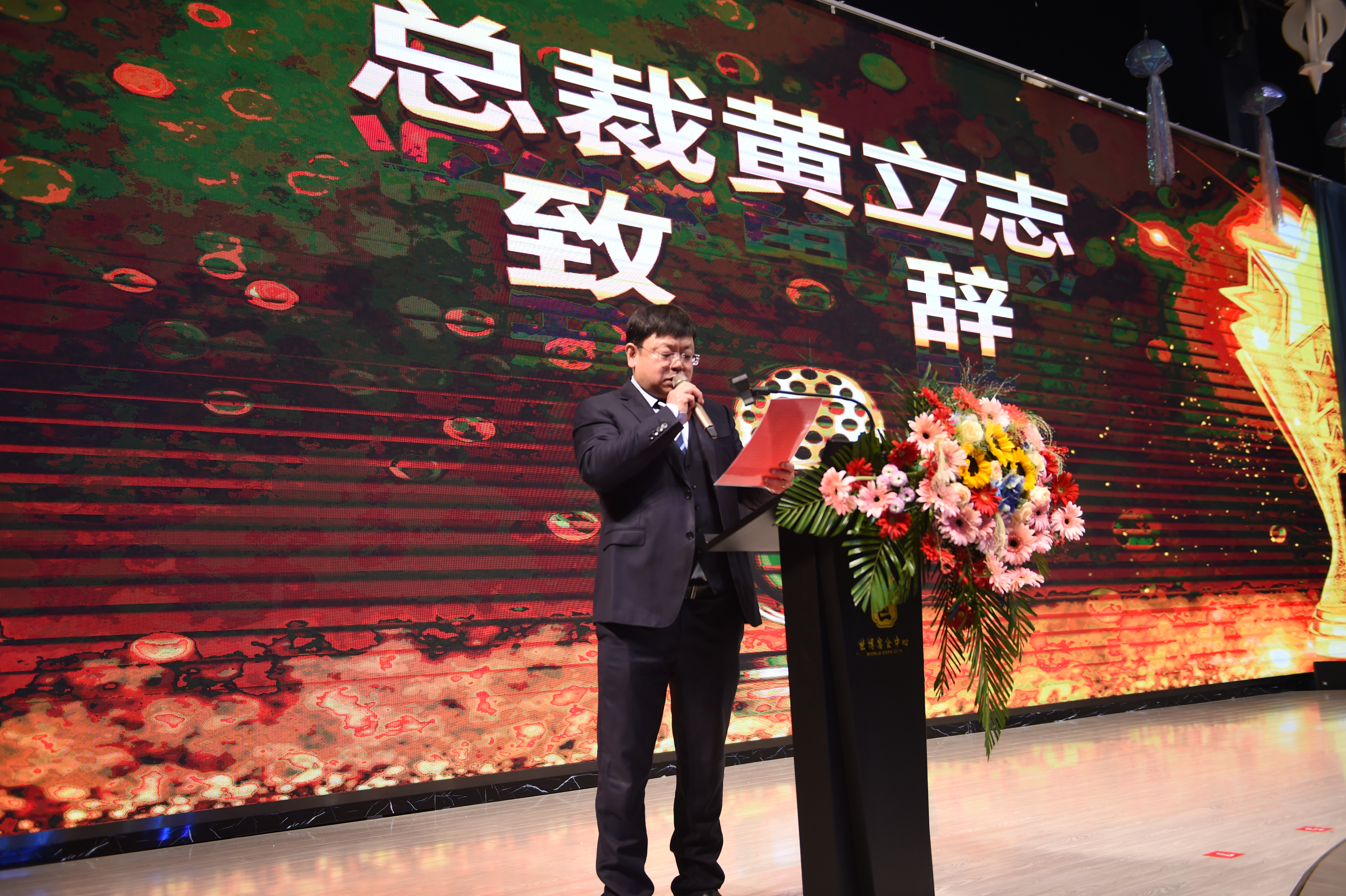 頒獎(jiǎng)典禮結(jié)束后,由公司總裁黃立志先生致辭,黃總對(duì)全體員工表達(dá)了由衷感謝,感謝各位員工在過去一年的辛勤付出,并對(duì)優(yōu)秀員工進(jìn)行了表揚(yáng),希望全體員工向優(yōu)秀員工學(xué)習(xí),最后,黃總向大家致以最誠摯的祝福,宣布晚宴正式開始!